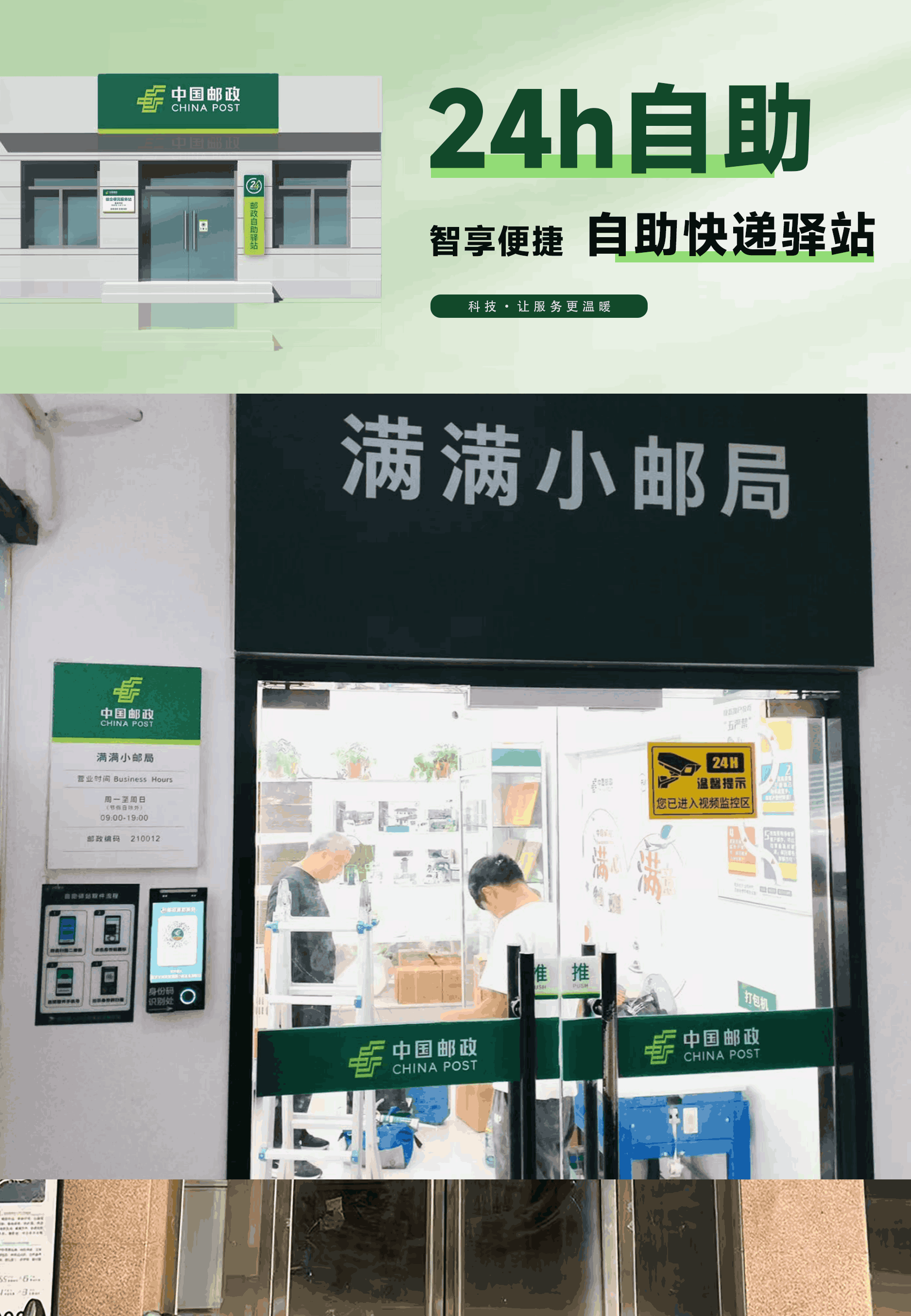 春回大地,万象更新。 为积极相应中国邮政集团有限公司无人驿站管理规范(Q/YB 0163—2025),江苏智原全新承建的“邮政无人驿站”,已率先启用全新视觉识别形象标识。主色调统一更新为清新明亮的草绿色,标志着邮政无人驿站迈入标准化、规范化运营的新阶段。